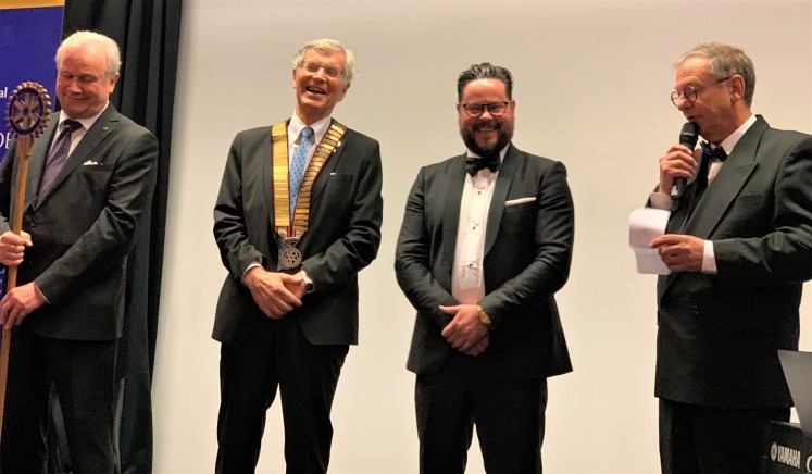 Rotaryklubben hadde gleden av å ønske Per Christian Markestad velkommen som nytt medlem under feiringen av 70-års jubileet på Strand Hotell på lørdag 2. april. Svært hyggelig å gjennomføre en slik høytidelig seremoni når man er samlet til fest!