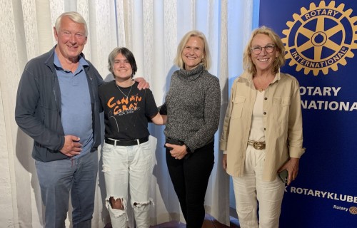 Fredrik Lykken fortalte levende om sitt liv og ga oss interessante innblikk i sitt yrke, samt noen refleksjoner om framtiden. Svært interessant og hyggelig å bli bedre kjent med ham. Under møtet 24. august fikk vi også besøk av utvekslingsstudent Winter.STUDENTUTVEKSLING: