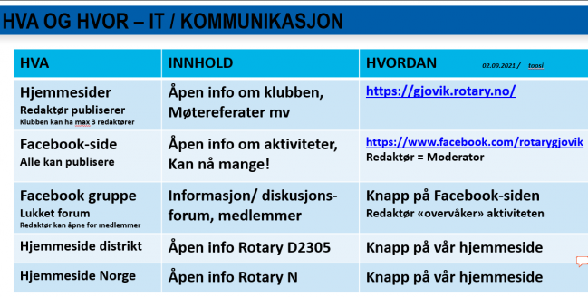 Hyggelig møte den 7. september med livlig prat rundt bordene. Rotary-stoffet bestod av en fersk rapport fra Julie, vår utvekslingsstudent som er på Hawaii, samt info fra klubbens komite for kommunikasjon og PR.Kveldens 3-minutter: