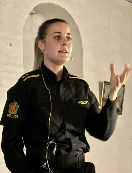 Politikonstabel Veronica Gaustadnes ved Gjøvik politistasjon ga oss på onsdag 29. oktober et grundig innblikk i ungdomskulturen i Gjøvik og omegn. Tittelen på hennes foredrag var " -- Hvordan står det til nå?" Interessant tema som trekte mange tilhørere.